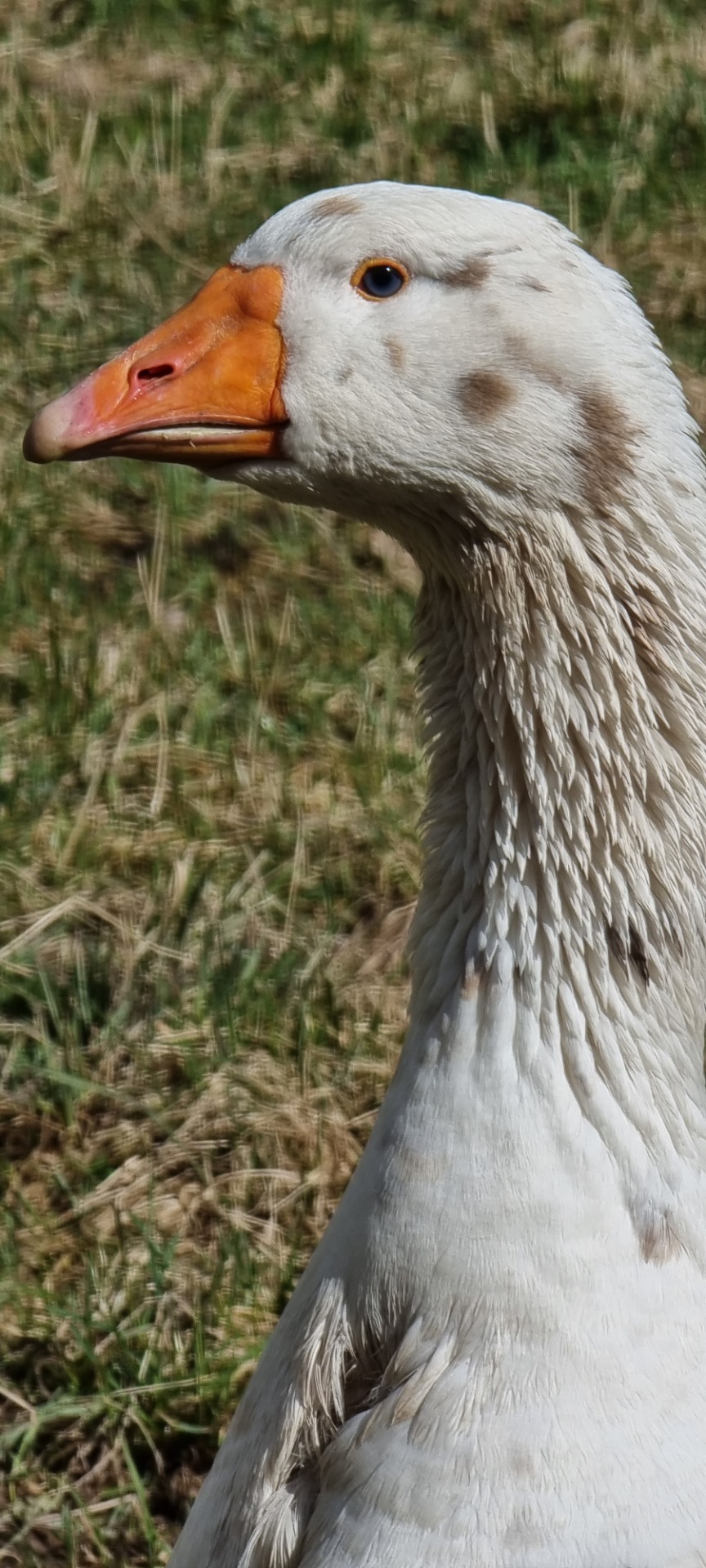 Hämtade Hero från sin uppfödare i Vångsta. Han är jättesöt, snäll, pratglad och matglad. Riktigt fin teckning på fjäderdräkten. Hero är född sommaren 2023 och är en blandning mellan Italiensk gås och Amerikansk Gulgås.