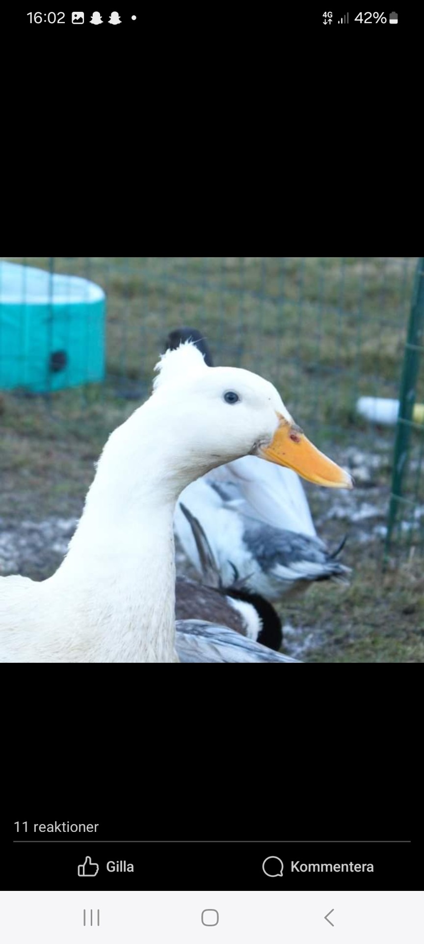 i sig själv med andra ankor. Hon var väldigt rädd för att bada i